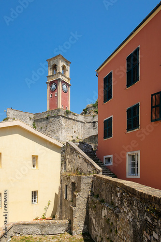 Fototapeta premium Old Fortress of Corfu Clock Tower and stairs, Corfu, Greece.