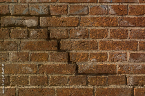 Fototapeta premium old, frayed yellow brick wall texture, background. copy space