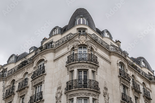 Fototapeta premium Old French house with traditional balconies and windows. Paris, France.