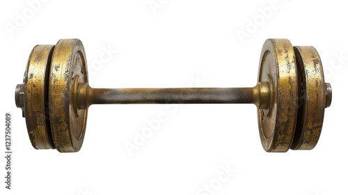 © PerfectPhoto, Fototapeta premium Old gold dumbbell isolated on transparent background for fitness concepts