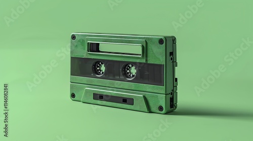 © Ronald, Fototapeta premium Old good audio cassette isolated on green with soft shadow
