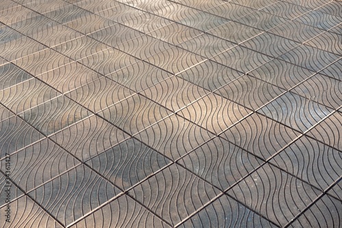 © Pavel, Obraz premium old gray square tiles with wavy patterns. rough surface texture