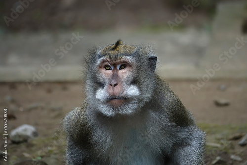 © Helen, Fototapeta premium Old grey monkey with white beard sitting pensively