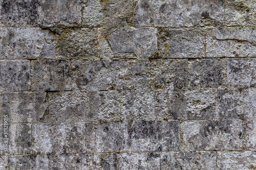 © Zwitterion, Obraz premium old grey rectangular stone wall with many rough edges
