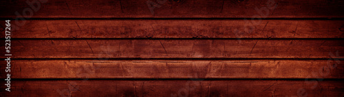 © Corri Seizinger, Fototapeta premium Old grunge rustic red colored dark wood table floor or wall texture - Wooden timber background banner panorama