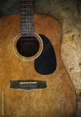 Fototapeta premium old guitar on wood textured