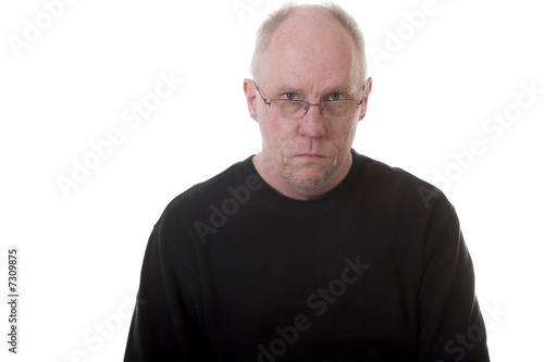 © dbvirago, Obraz premium Old Guy in Black Shirt Looking Stern Over Glasses