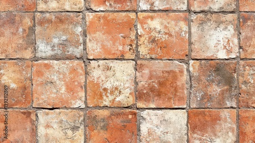 Obraz premium Old handmade terracotta tile flooring seamless texture map pattern background