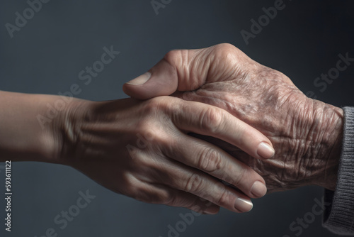 © MariaEugenia, Fototapeta premium old hands and young hands on gray background