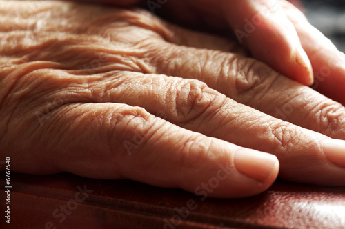 © Mykola Velychko, Fototapeta premium Old hands on book