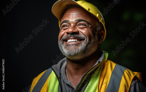 Fototapeta premium old happy smiling Construction Worker on black background