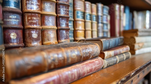 Naklejka premium old hardcover books shelf ancient library wood education wisdom classic data