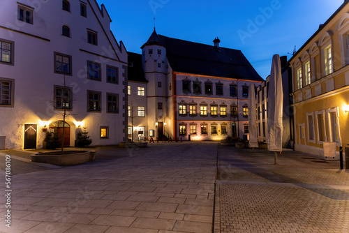 Naklejka premium Old, historic town hall of Weissenhorn with the lettering Town Hall in German in front of it