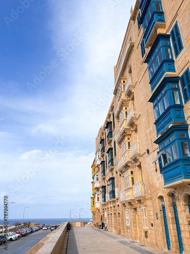 © Lucia, Fototapeta premium Old historical buildings in the island Malta, Valletta town, beautiful stone walls and colorful balcony, nice weather