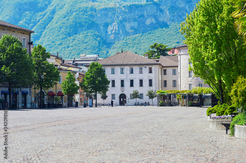 Naklejka premium Old historyc market square in the italian city Trento with nobody on it,...