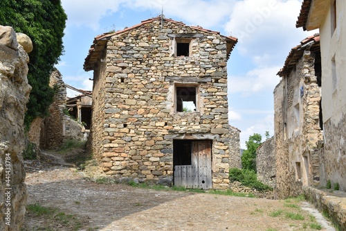 © Iker, Naklejka premium Old house built in dry stone in the town square of Villarijo. Currently abandoned, Soria province, Spain.