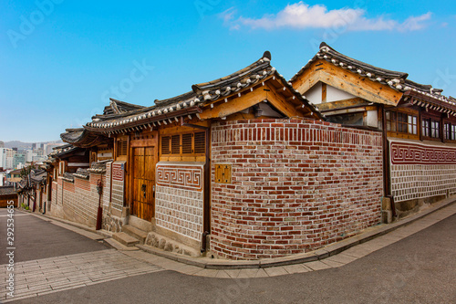 Fototapeta premium Old House Traditional Korean style architecture at Bukchon Hanok Village in Seoul, South Korea.