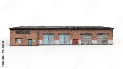 © denlog, Obraz premium Old industrial building render on a white background. 3D rendering