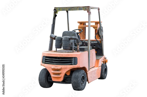 © sergiy1975, Fototapeta premium old industrial warehouse lift isolated on white background
