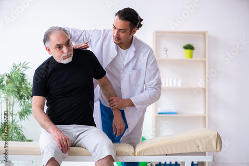 Fototapeta premium Old injured man visiting young doctor