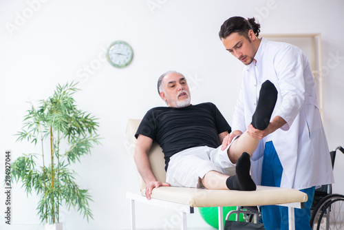 Fototapeta premium Old injured man visiting young doctor