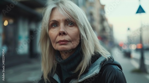 Fototapeta premium Old Latino Woman with Blond Straight Hair 1990s style Illustration.