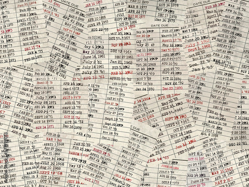 Obraz premium Old library card collection with rubber-stamped due dated
