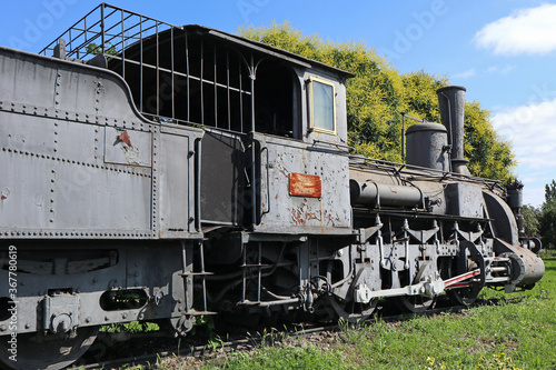 Naklejka premium Old locomotive next to the railway station