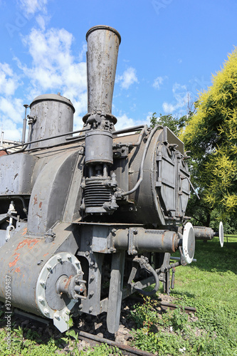 © majorosl66, Naklejka premium Old locomotive next to the railway station