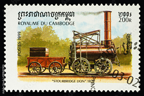 © Vic, Obraz premium Old locomotive "Stourbridge Lion" (1829) on postage stamp