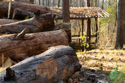 Fototapeta premium old log cabin in forest