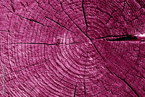 © pavelalexeev, Fototapeta premium Old log cut macro in pink tone.