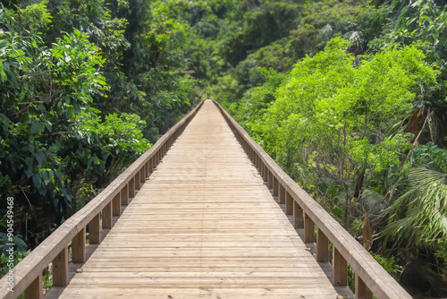 © norikko, Obraz premium 古い木の橋 Old long road bridge made of wood