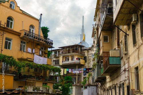 © Alla Bacherikova, Fototapeta premium Old low-rise buildings with a high-rise tower in the center of Batumi, Georgia. City's contrasts concept