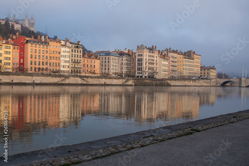 Naklejka premium Old Lyon's reflections on a cloudy day