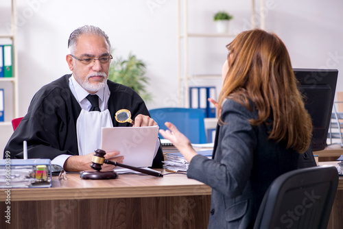 © Elnur, Fototapeta premium Old male judge and female client in the office