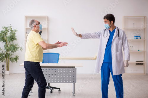 Fototapeta premium Old male patient visting young male doctor in social distancing