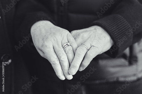 Fototapeta premium old man and woman in love holding hands on their anniversary