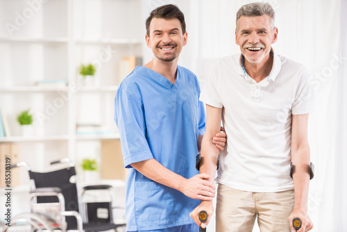 © VadimGuzhva, Fototapeta premium Old man at hospital