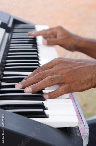 © ZhouEka, Fototapeta premium Old man hand playing electone, musical.