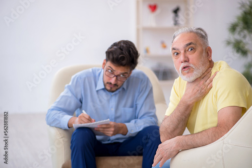 Obraz premium Old man visiting young male psychotherapist