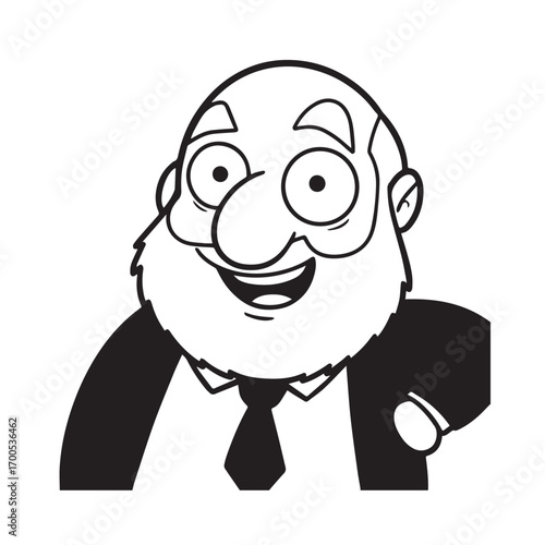 © Fakhrudin, Obraz premium Old man with formal suit black and white vector illustration for classic portrait artwork design