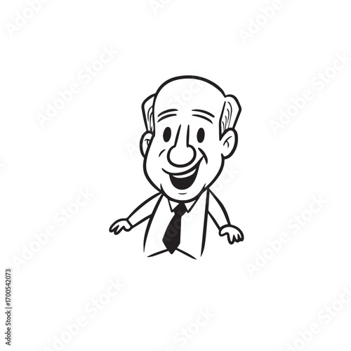 © Fakhrudin, Obraz premium Old man with formal suit black and white vector illustration for classic portrait artwork design