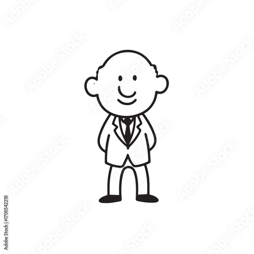 © Fakhrudin, Obraz premium Old man with formal suit black and white vector illustration for classic portrait artwork design