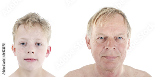 © bramgino, Fototapeta premium old man young boy comparison concept of aging