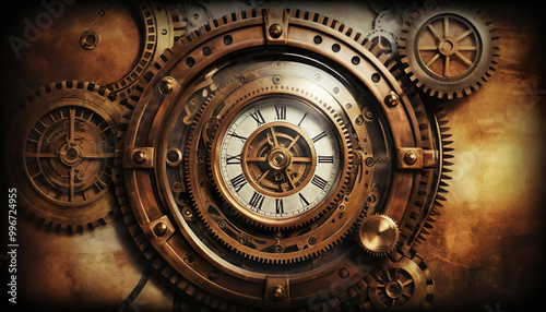 © SUNNY DAY STUDIO, Obraz premium old mechanism steampunk background