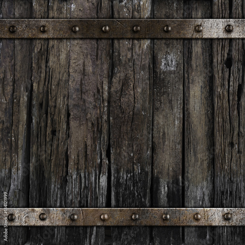 © Andrey Kuzmin, Obraz premium old medieval barrel wood background