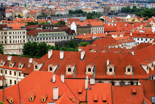 © rospoint, Fototapeta premium Old medieval houses, building, red tiled roofs in Prague, Czech Republic, panorama. Historical buildings in Prague Czechia