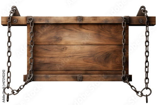 Obraz premium old medieval wood board hanging isolated on transparent background png