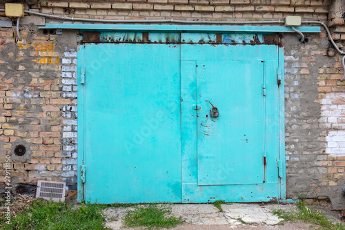 © vadim_fl, Naklejka premium old metal door to the car garage